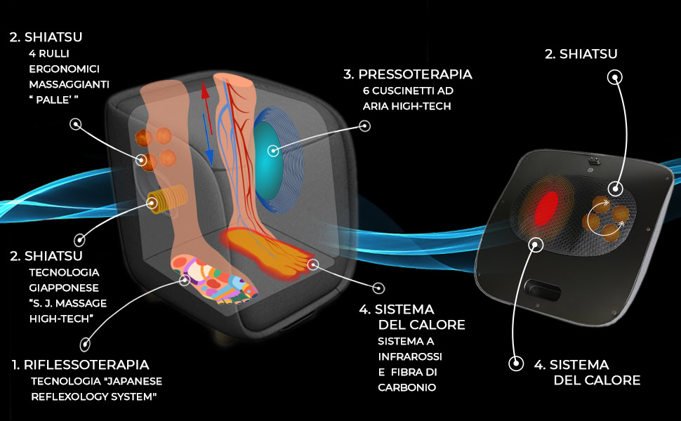 Il sistema a infrarossi agisce su piedi, caviglie, gambe e polpacci, e offrendo un sollievo profondo e duraturo.