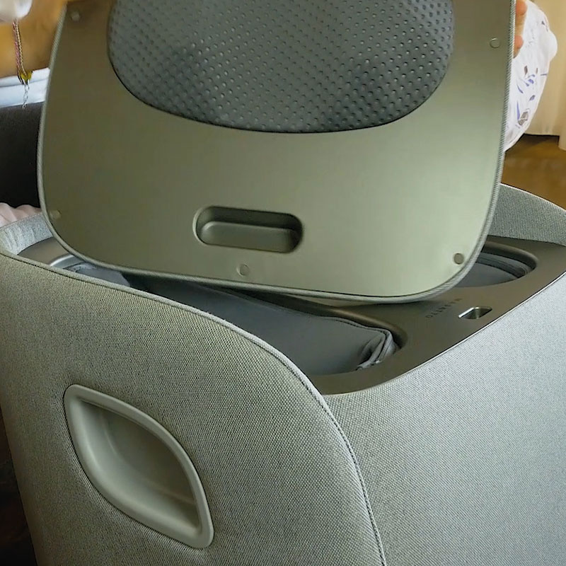 Quando non in uso, si trasforma in un elegante pouf poggiapiedi o in una comoda seduta per la casa.